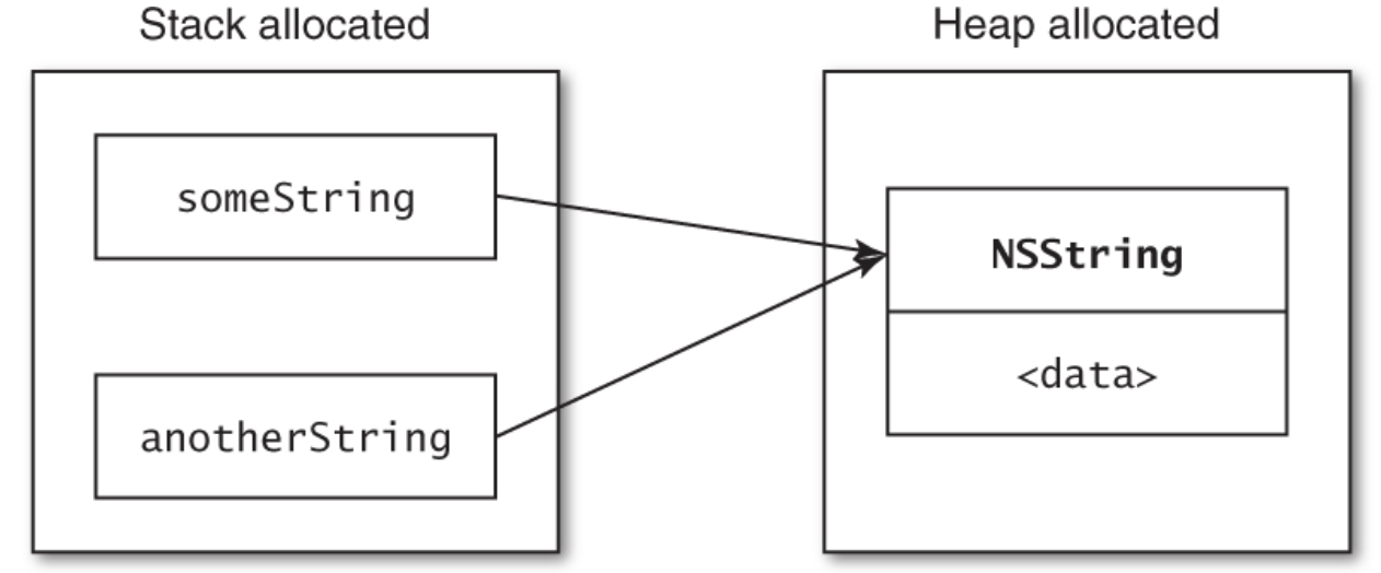 -> Objective-C 에서 객체는 메모리 주소인 포인터로 참조된다.